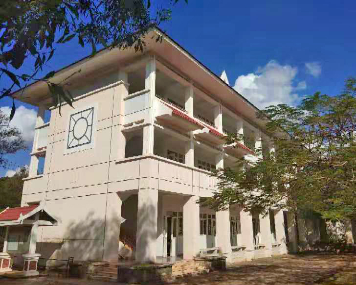 這是我上課的教學樓——語言學院,遵循著“看人先看臉”的原則,我們先看一下它的外在環(huán)境??催^前幾期介紹的小伙伴不難發(fā)現(xiàn),老撾國立大學的教學樓基本都是紅頂白墻,活潑跳躍的顏色彰顯著這所學校的朝氣。