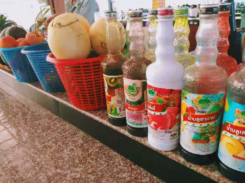 食堂的中間有鮮榨果汁售賣,一瓶大概5000基普,折合成人民幣也就4塊左右。