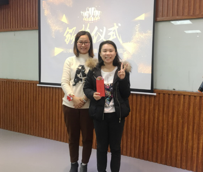 金沛南湖校區(qū)張金雪校長(zhǎng)為何佳學(xué)員頒發(fā)三等獎(jiǎng)