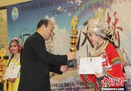 肖千稱贊印尼賽區(qū)的比賽每年都有新氣象,參賽省份越來越多,參賽學生的漢語水平逐年提高。他稱參加“漢語橋”比賽的年輕人是促進中印尼兩國民相親、心相通的友好使者。