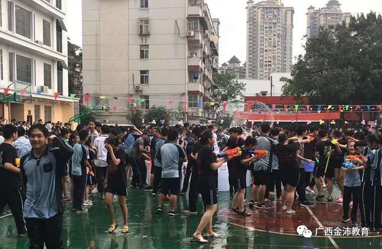 活動開始,高三學(xué)子進(jìn)行“游龍翻身”的游戲,取“游龍翻身取金榜,十五中學(xué)我最棒”的含義。接下來身著東盟各國傳統(tǒng)服飾的學(xué)生為大家獻(xiàn)上了優(yōu)美的東盟國家舞蹈,展現(xiàn)了東盟各國的傳統(tǒng)舞蹈的魅力。隨后由學(xué)校校長帶隊,各年級老師共同參與,手持水瓢,將滿載祝福的水輕灑向所有高三學(xué)子,拉開了潑水狂歡的序幕。伴隨著歡快的音樂,潑水狂歡將本次活動帶向高潮,大家積極參與,手持水盆、小桶、水槍,你追我趕,相互潑灑,傳遞著著祝福與歡樂。以多種形式將各國文化風(fēng)情融入學(xué)生的心理教育中。
