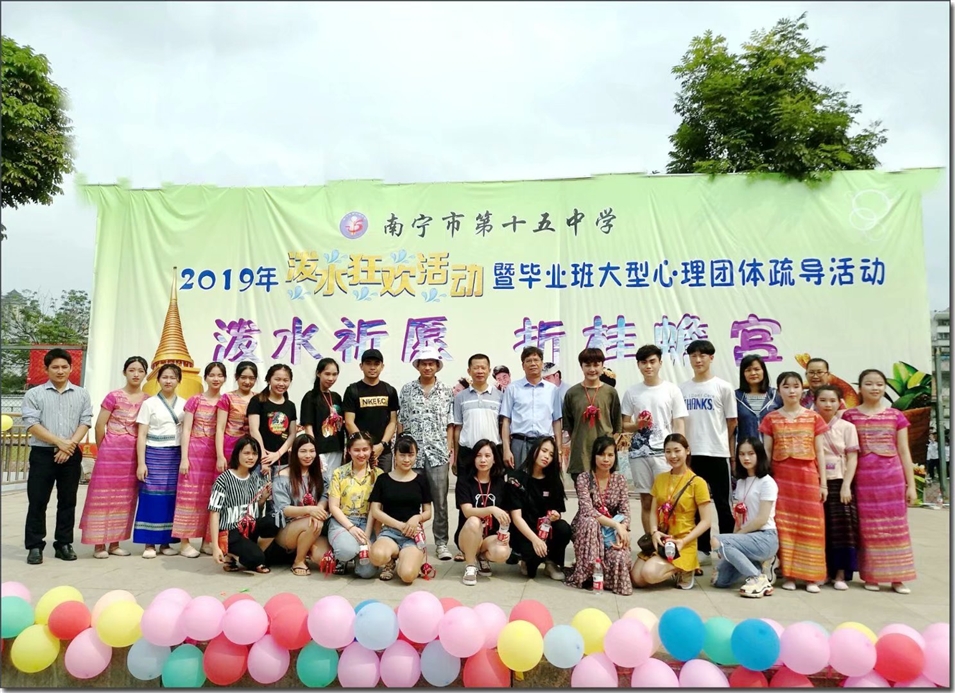 4月26日下午,廣西金沛教育與東盟各國留學(xué)生受邀參加了南寧市第十五中學(xué)第四屆潑水節(jié)活動。
