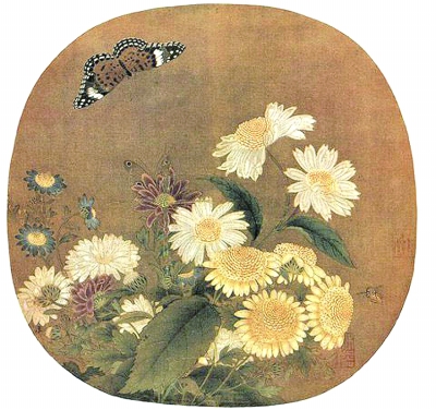 宋·朱紹宗《菊叢飛蝶圖》