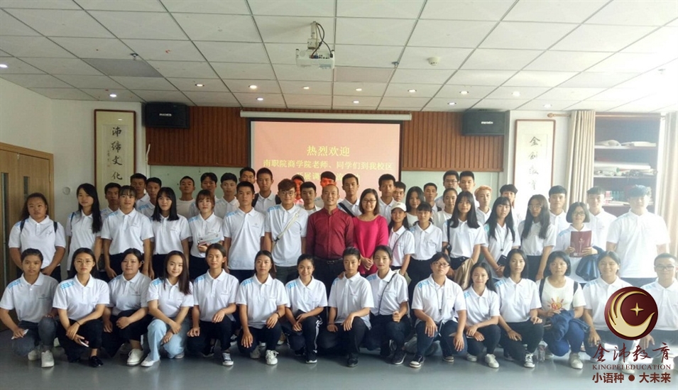 同學們對粟宥朝董事長的介紹反響熱烈。由于在場的同學們都是商務方向的學生,在國際交流和商貿(mào)等方面的信息很感興趣。金沛教育作為廣西首屈一指的東盟語言培訓品牌,業(yè)務范圍涵蓋教育培訓和國際交往,也讓同學們耳目一新。