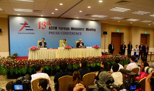 11月21日,杜昂山素季舉行新聞發(fā)布會(huì)表示:緬甸很榮幸主辦第十三屆亞歐外長(zhǎng)會(huì)議,本屆亞歐外長(zhǎng)會(huì)議共有來(lái)自亞歐51個(gè)成員國(guó),亞歐會(huì)議秘書(shū)處和歐盟的54個(gè)代表團(tuán)和500多名代表參加了會(huì)議。代表團(tuán)由亞歐外長(zhǎng)或高級(jí)代表領(lǐng)導(dǎo)。本屆會(huì)議之前的11月17日至19日期間,舉辦了90多個(gè)雙邊會(huì)議。