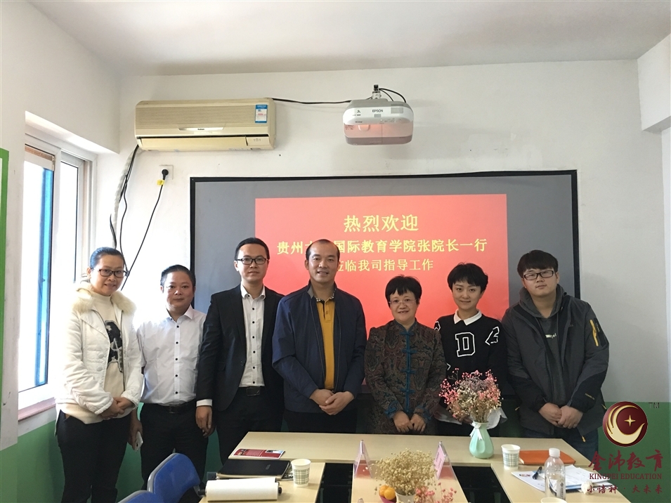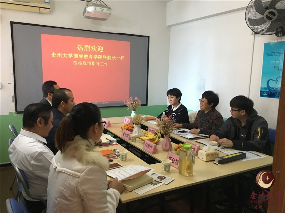 2017年12月2日上午,貴州大學(xué)國(guó)際教育學(xué)院張成霞院長(zhǎng)與教學(xué)科科長(zhǎng)唐穎、留學(xué)生輔導(dǎo)員李博一行蒞臨我司視察指導(dǎo)工作,由我司執(zhí)行董事粟宥朝、校長(zhǎng)張金雪、國(guó)際部合伙人吳琪、林健偉老師接待來賓。