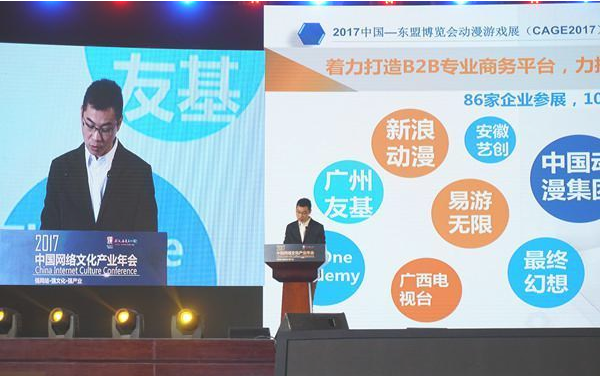 12月13日,中國—東盟博覽會秘書處在2017中國網(wǎng)絡(luò)文化產(chǎn)業(yè)年會游戲論壇上現(xiàn)場推介2018中國—東盟博覽會動漫游戲展,中國動漫集團、武漢市委宣傳部、武漢市文化局、武漢數(shù)字創(chuàng)意與游戲產(chǎn)業(yè)協(xié)會和中國—東盟博覽會秘書處動漫游戲展負責(zé)人出席了會議,網(wǎng)易游戲、騰訊公司、觸控科技、樂競文化、愛奇藝、盛大游戲、蝸牛數(shù)字、亞聯(lián)資本、掌游科級等動漫知名企業(yè)負責(zé)人到會交流。
