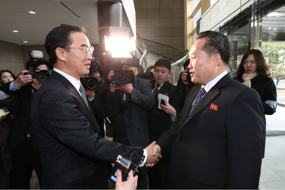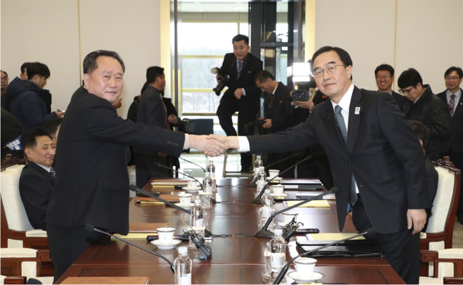 當(dāng)?shù)貢r間2018年1月9日,韓國和朝鮮代表在板門店韓方一側(cè)“和平之家”舉行韓朝高級別會談,就朝方派代表團參加平昌冬奧會、南北關(guān)系改善等共同關(guān)心的問題進行討論。這是時隔兩年多之后,韓朝雙方再次實現(xiàn)高級別對話。
