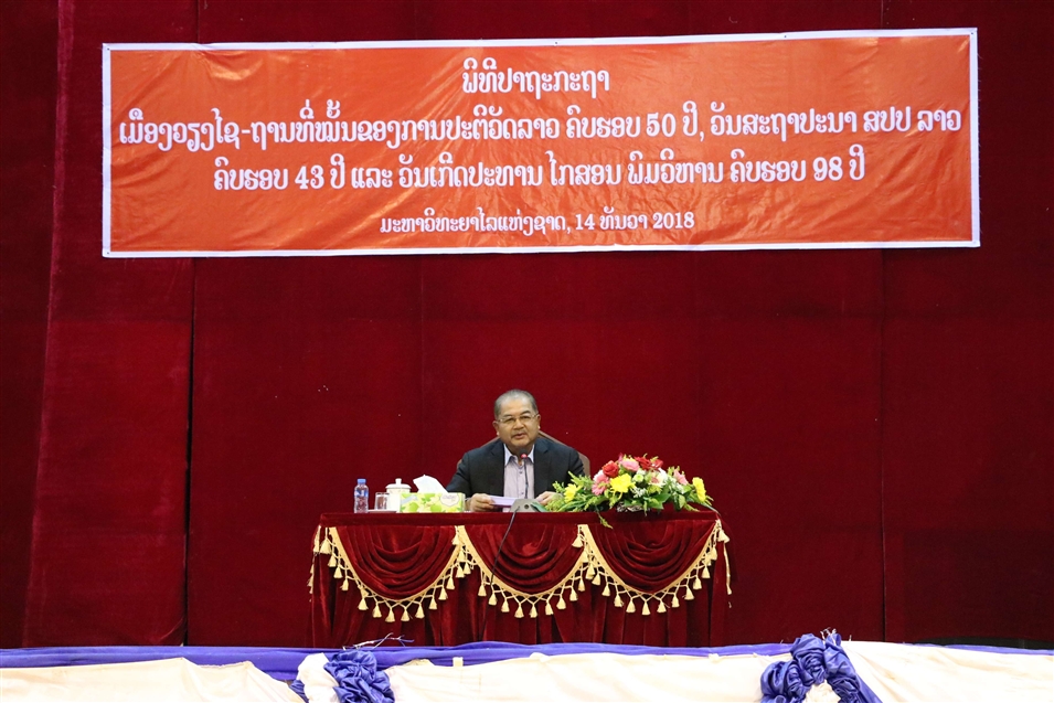 老撾國立大學(xué)領(lǐng)導(dǎo)班子、骨干教師和全體師生參與了本次會議,大家共同收聽了“建立華潘省會曬市革命根據(jù)地50周年”,“老撾人民民主共和國成立43周年”,“主席誕辰地方梵?。ǚ鸾堂~)98周年”等重要講話內(nèi)容,深入學(xué)習講話精神。