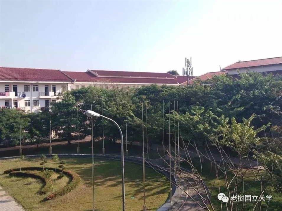 老撾國立大學校園面積很大,富有東南亞特色的熱帶植被,也保留了很多原始花木,宿舍大門有沒有一種要穿越時空隧道的感覺,高大的樹木遮蔽著宿舍樓,樓下環(huán)境優(yōu)美自然,很適合學習交流