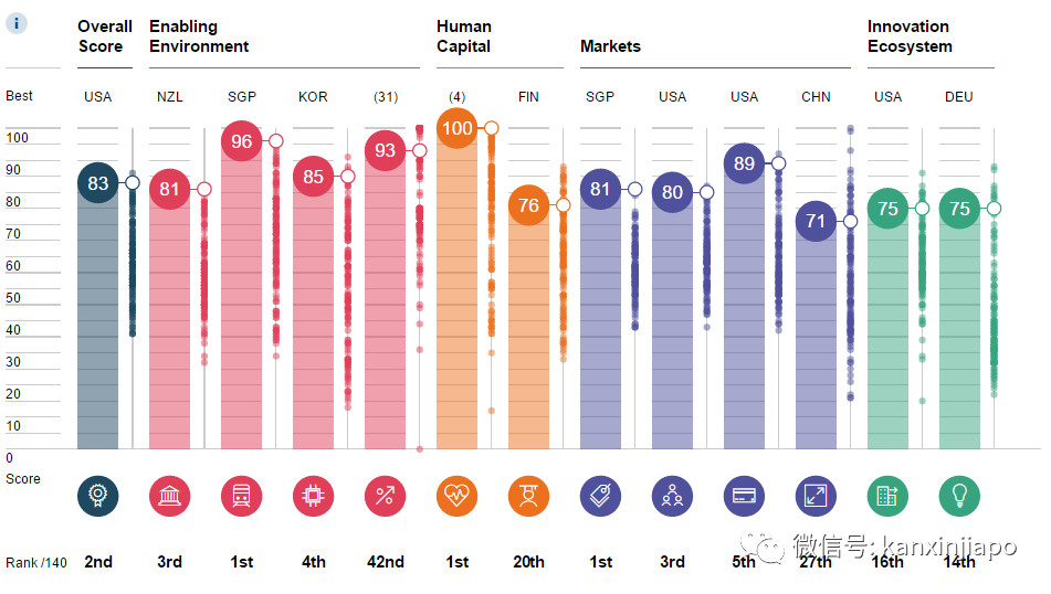 今年,世界經(jīng)濟(jì)論壇對(duì)評(píng)分進(jìn)行了大幅調(diào)整,把未來(lái)技術(shù)驅(qū)動(dòng)的經(jīng)濟(jì)成長(zhǎng)作為導(dǎo)向,加入了多項(xiàng)新指標(biāo),從創(chuàng)新能力、開(kāi)放性和靈活性等12項(xiàng)類別的98個(gè)要素進(jìn)行綜合考察。