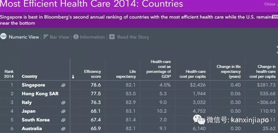 在彭博社發(fā)布的世界各國(guó)醫(yī)療效率排名表中,新加坡的醫(yī)療效率更是排到了全球第一!