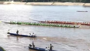 龍舟賽作為開門節(jié)的盛大活動之一,歷來受到廣泛關(guān)注。今年雖然因老撾各種災(zāi)禍頻發(fā)受到一定程度的影響,只有7支男子隊(duì),5支女子隊(duì)報(bào)名參加,但場面還是熱鬧非凡。