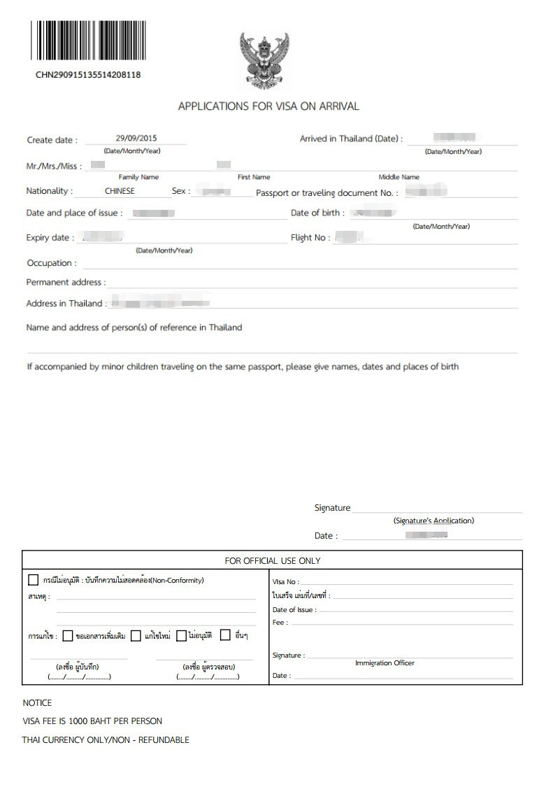 1. 泰國落地簽表格,建議游客在線完成后持打印文件入境,也可打印空白表格填寫